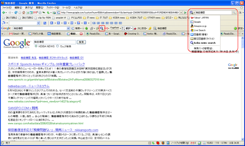 「OpenSearch プラグイン keiba news searchGoogle ツールバー」でFirefoxに、「Google ツールバー プラグイン keiba news search」でGoogleツールバーに入ります。