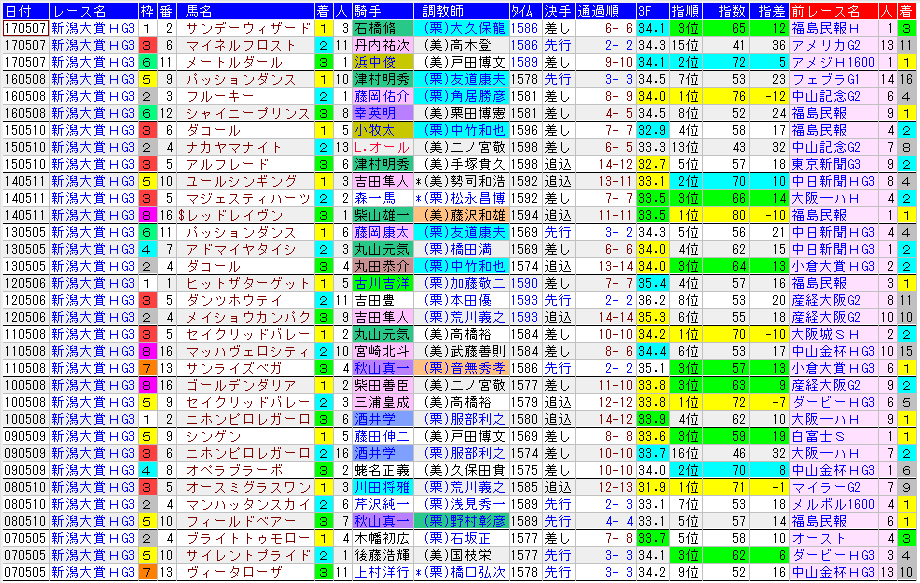新潟大賞典 過去11年のコンピ指数